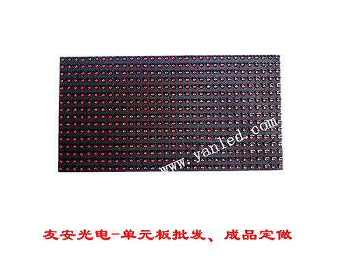 户外P10单色直插单元板主要是单色(红色或绿色或蓝色或白色或黄色或紫色等)LED晶片封装为一个像素点后组成的矩阵,再